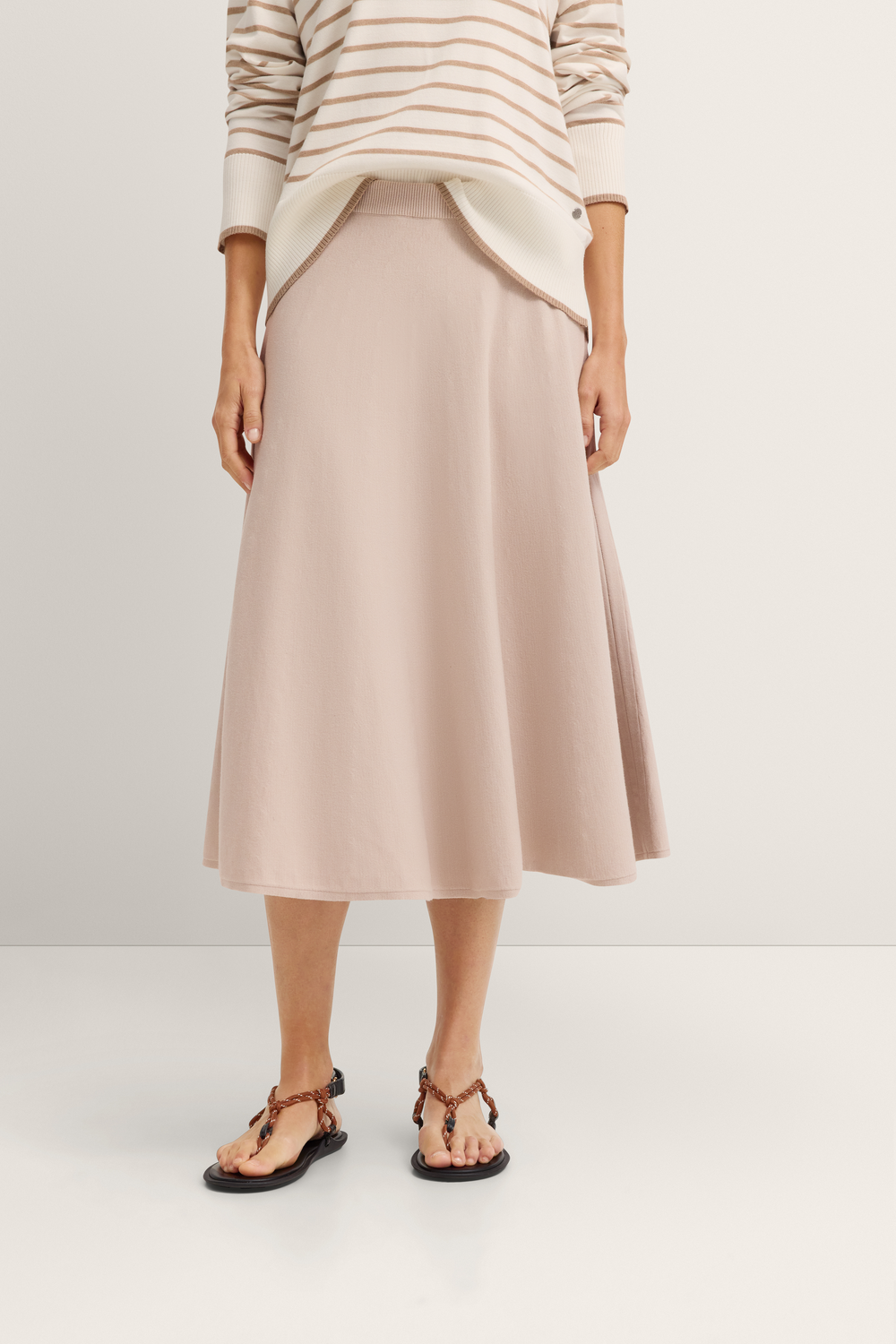 Fine knitted skirt with an elastic waistband and flowing silhouette in beige