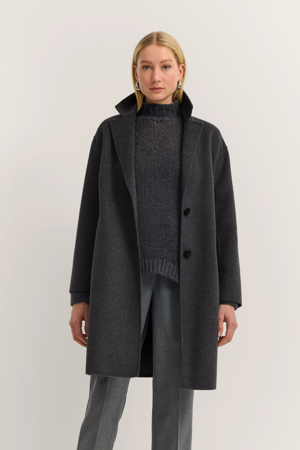 Lapel collar coat with button placket and made of soft wool mix in dark grey