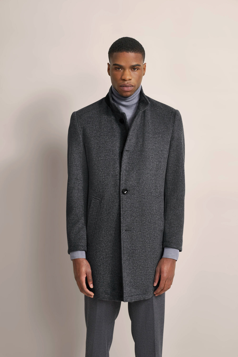 Discover the comfort and style of the bugatti stretch coat! This elegant slim-fit model features a modern stand-up collar and slanted welt pockets, perfect for the dynamic man. The soft feel and structured wool-cotton blend ensure optimal comfort and freedom of movement.