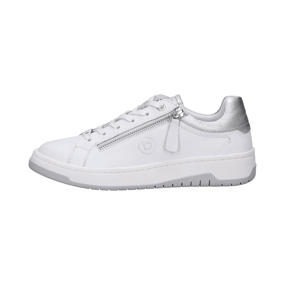 whiteWith this fashionable sneaker, you'll make a statement for trendy design and maximum comfort. The contrasting details and metallic heel add a glamorous touch, while the side zipper is not only practical but also adds an extra touch of sophistication. With the bugatti logo on the outside, you're ready to step out into the day in style.