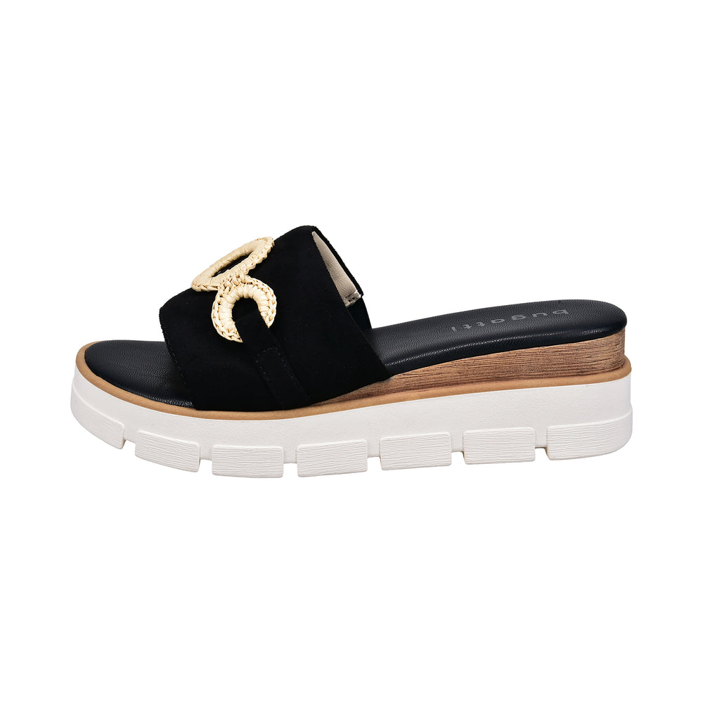 With this fashionable toe separator, you'll skillfully showcase your feet. The wide straps and thick sole made of high-quality synthetic material offer not only comfort but also stability with every step. The contrasting details give this sandal a trendy touch and make it the ideal companion for sunny days.