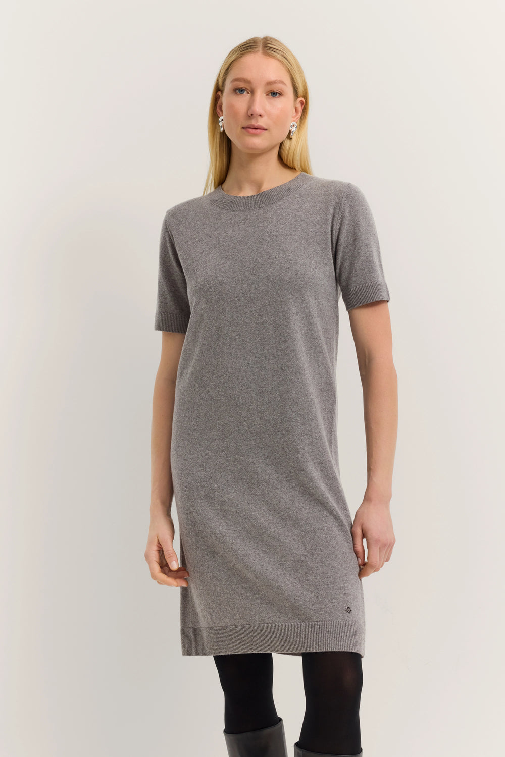 Gebreide jurk van een fijne wol- en kasjmiermix in grijs