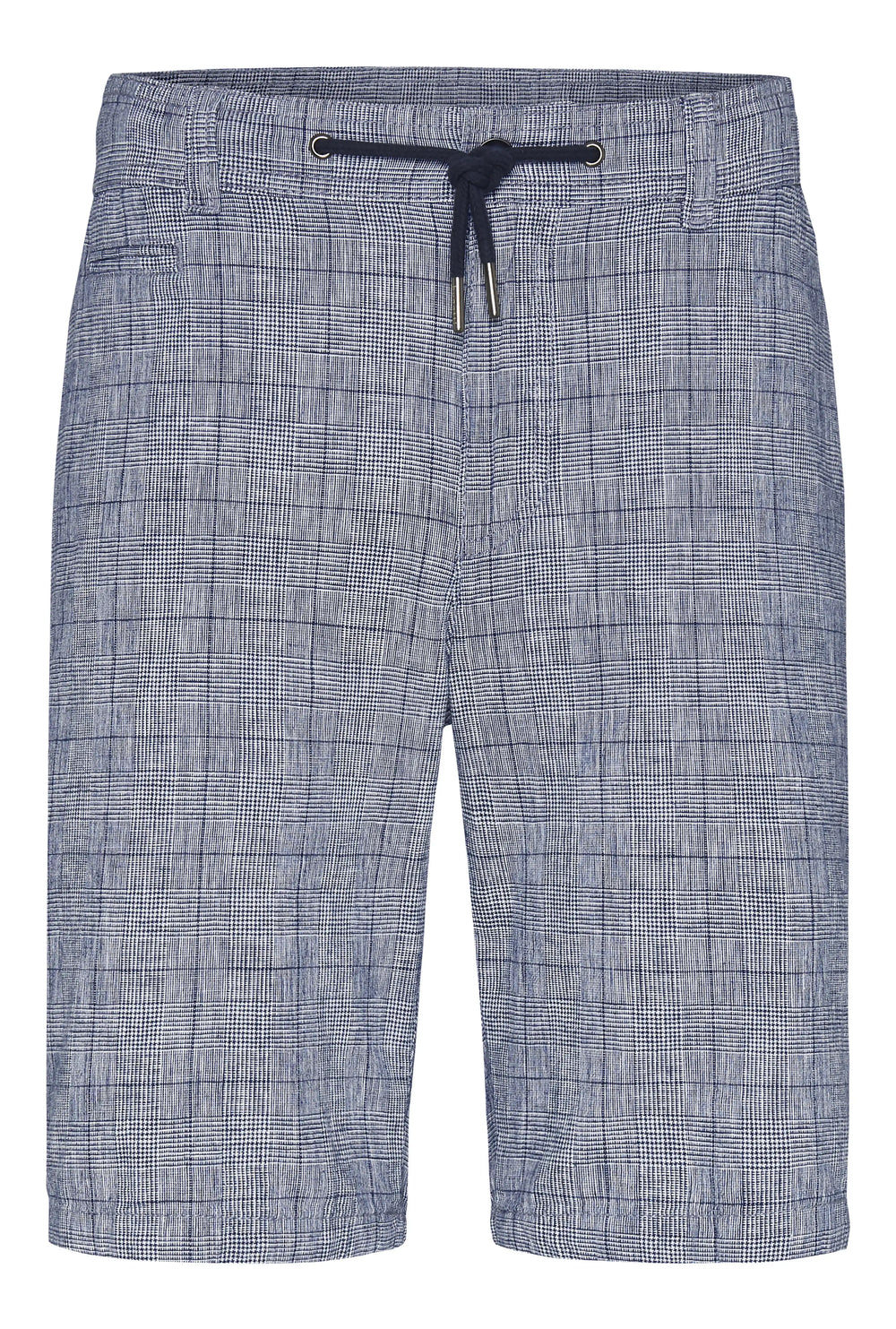 marineDiese Bermuda mit praktischem Gummizug und Kordel ist aus einem hochwertigen Baumwoll-Leinen-Mix gefertigt und somit besonders an heißen Tagen ein unverzichtbares Kleidungsstück. Das klassische und zurückhaltende Karomuster lässt sich einfach mit einem T-Shirt oder Polohemd kombinieren.