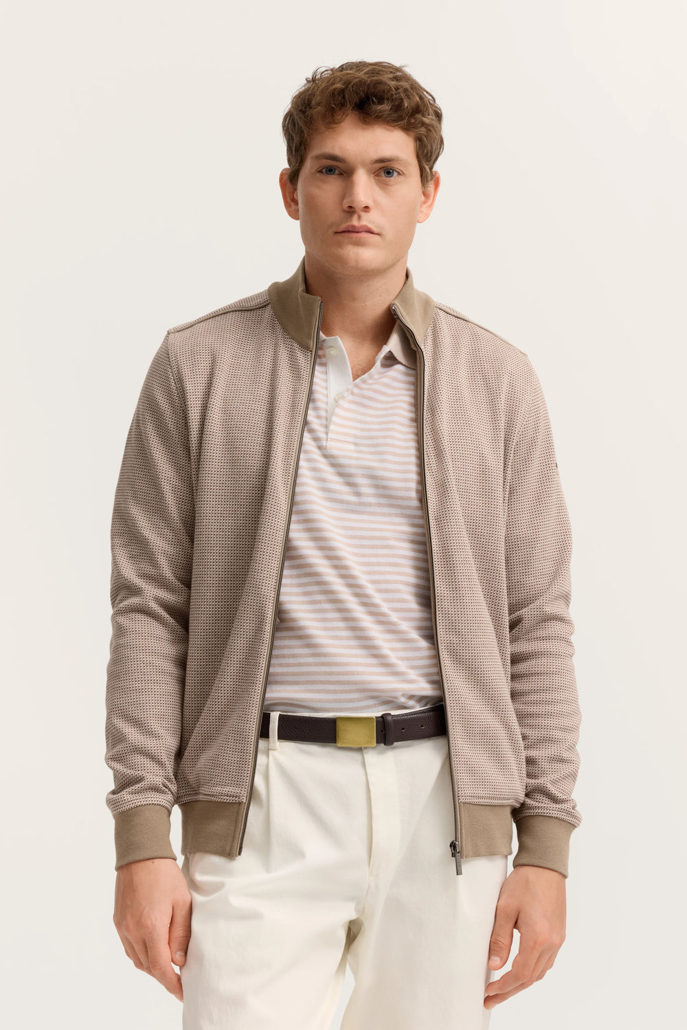 Elegante Sweatjacke mit Jacquard-Muster und Stehkragen in beige