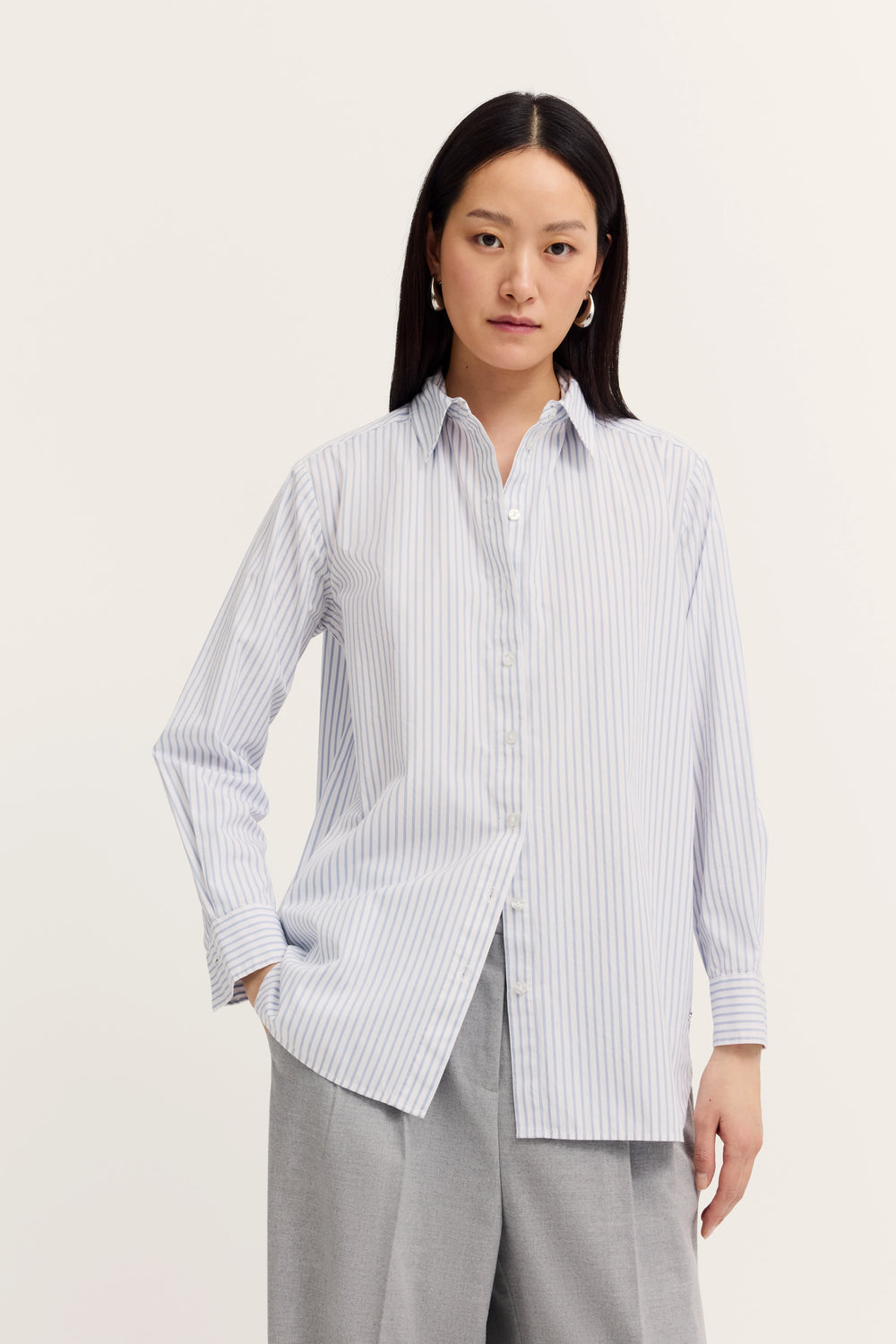Freizeitbluse gestreift mit Hemdkragen & Knopfleiste in blaugrau