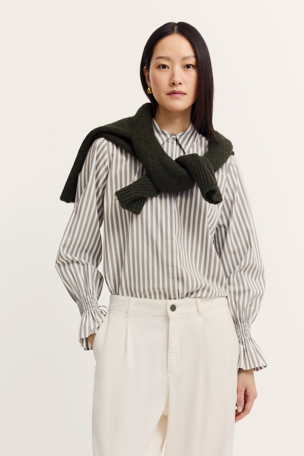 Freizeitbluse mit Smok-Manschette & Hemdkragen in moos