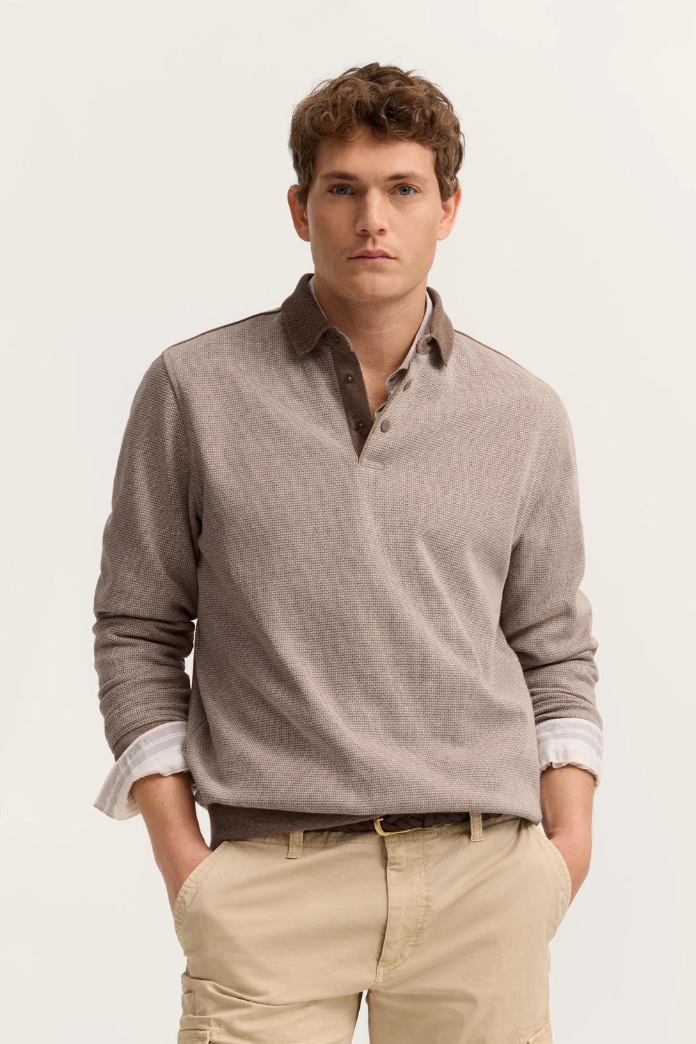 Langarmpolo mit Struktur in two-tone Optik und modernem Fit in beige