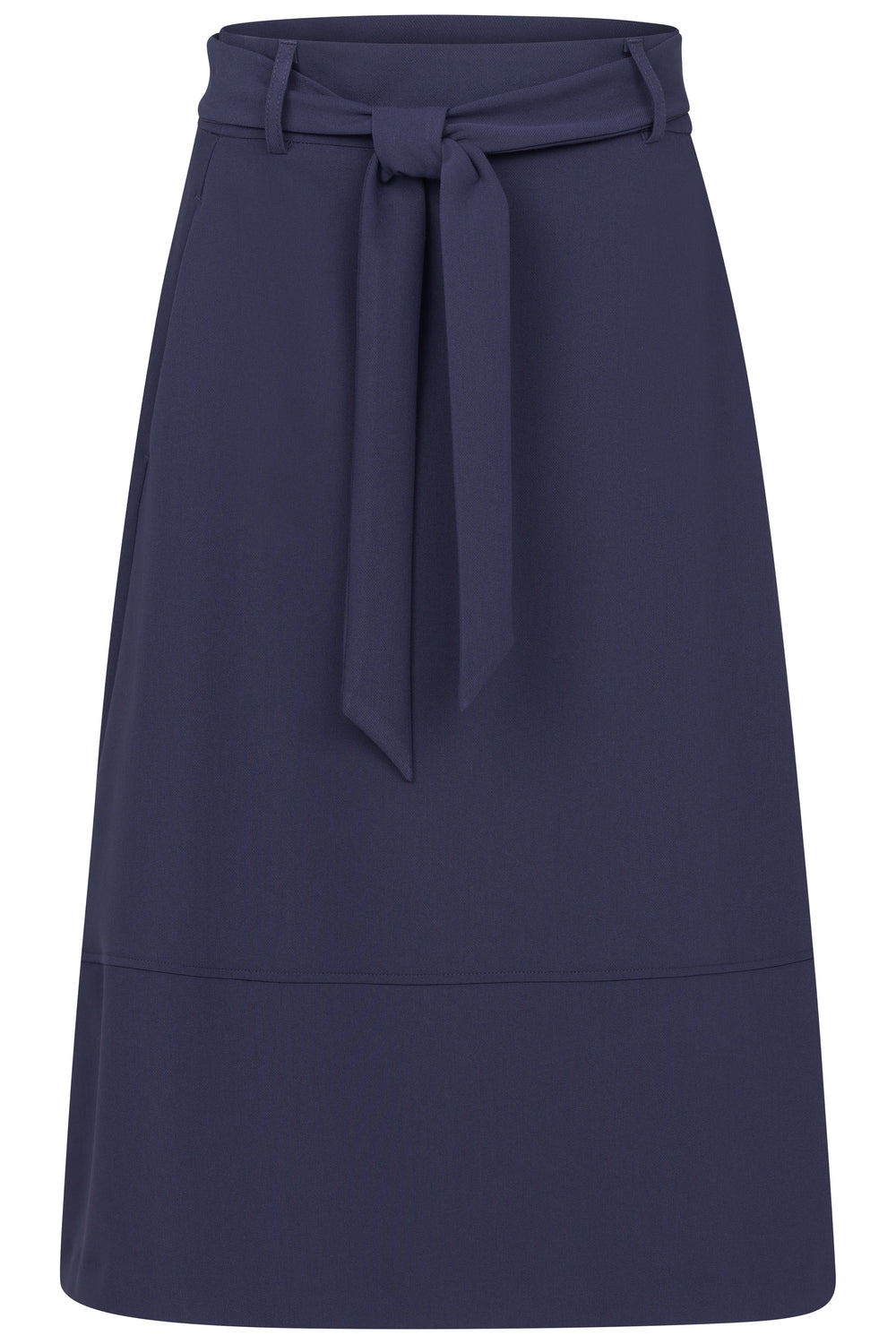 Dunkelblauer Rock mit Gürtel in Büstenbild, elegant und zeitlos von bugatti.